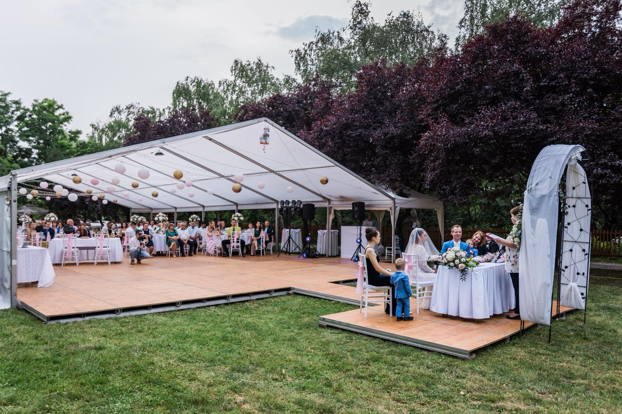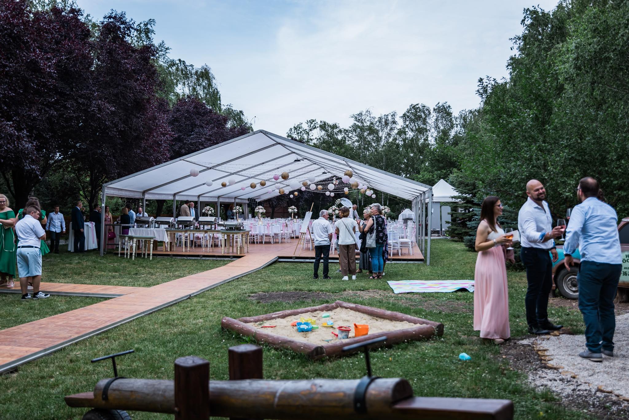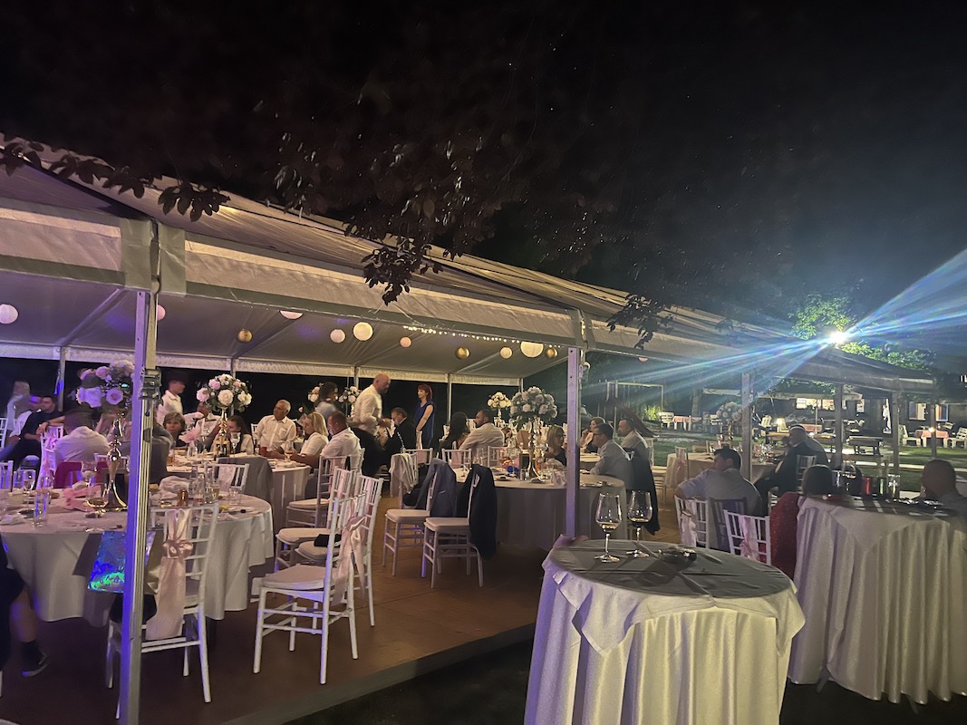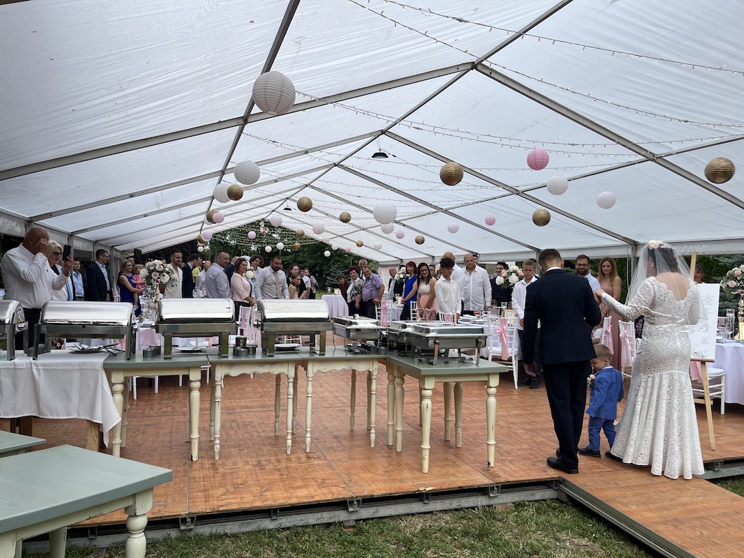 A helyszín alkalmas akár 150 fős sátras esküvő megrendezésére is, ugyanakkor szeretnénk megtartani a hely családias vendéglő jellegét, ezért évente csak 2-3 alkalommal biztosítunk lehetőséget ilyen nagy létszámú zárt körű eseményre. Sátor bérlésében és dekoratőr ajánlásában is örömmel segítünk az Ifjú párnak. Kisebb esküvőkre rendezvénytermünk ad lehetőséget, melyről részletesebben az alábbi KÜLÖNTEREM gombra kattintva lehet olvasni.